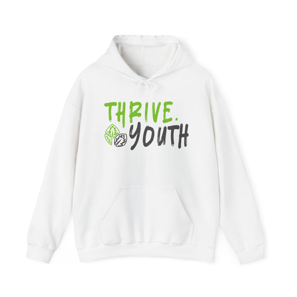 This comfortable hoodie features the classic Thrive.Youth logo front and center! Perfect for chilling around the snack-shuffleboard table.